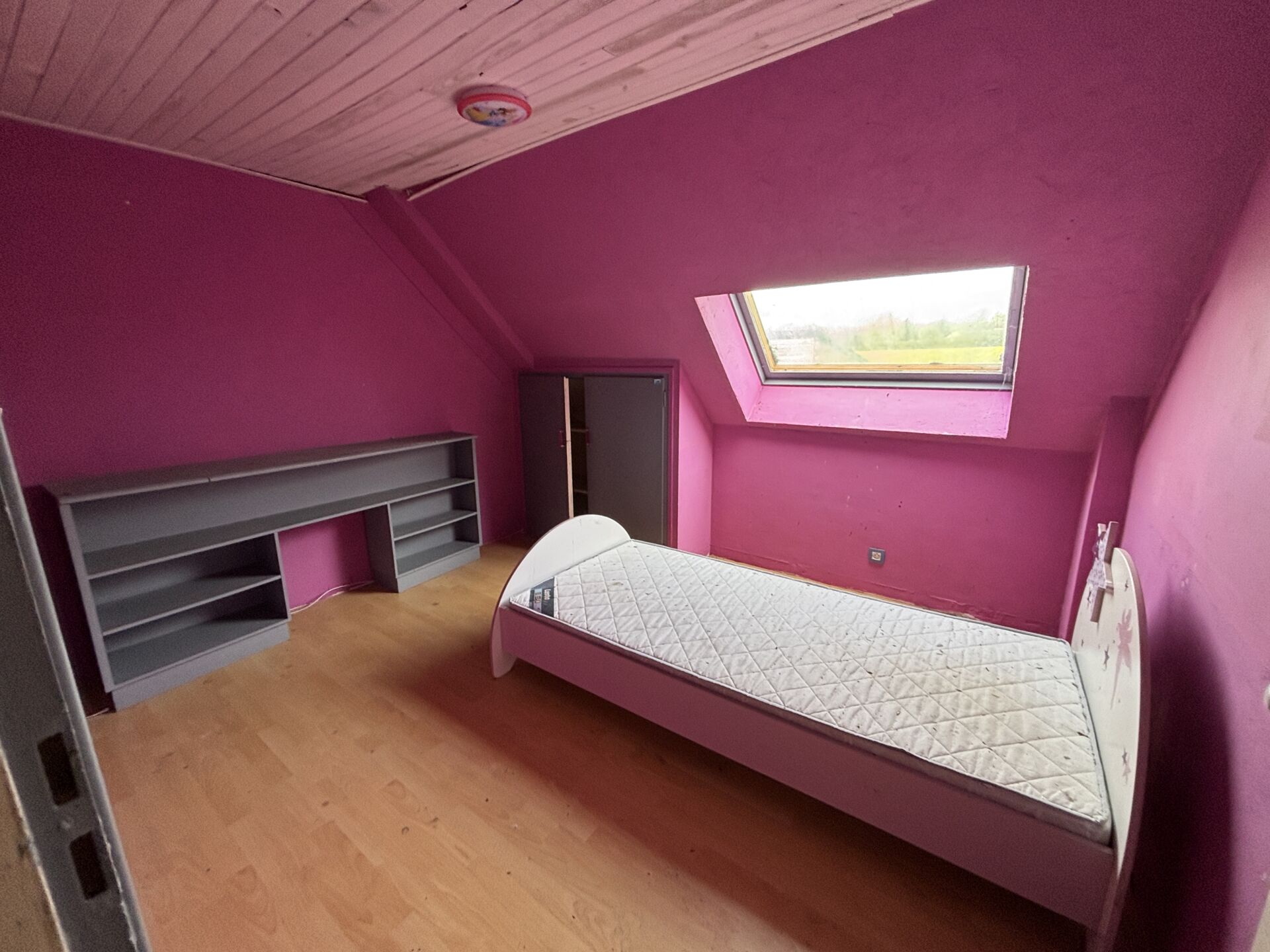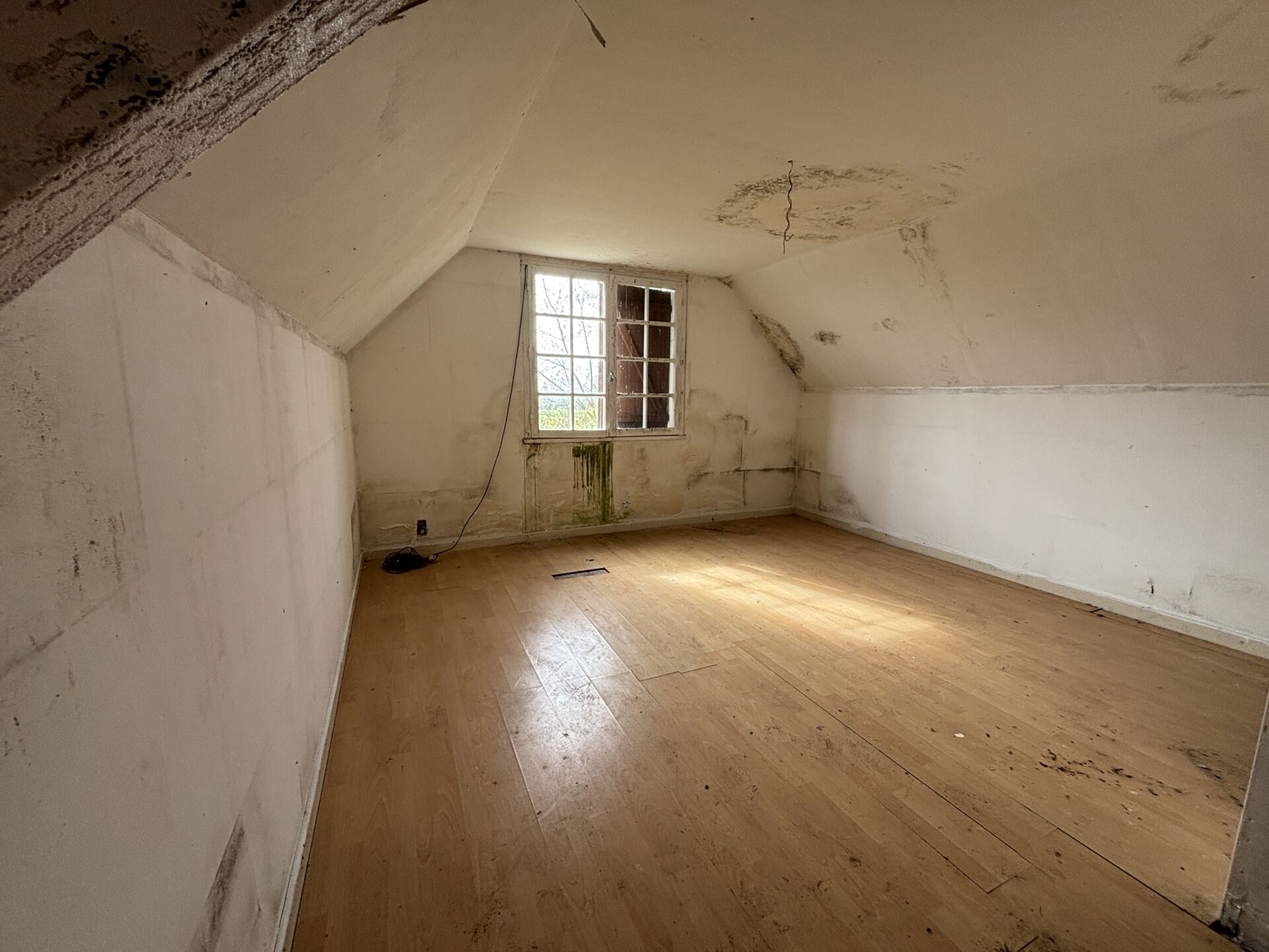 À l’étage : un couloir desservant une salle d’eau, WC, deux chambres, une pièce supplémentaire ainsi qu’un grenier.