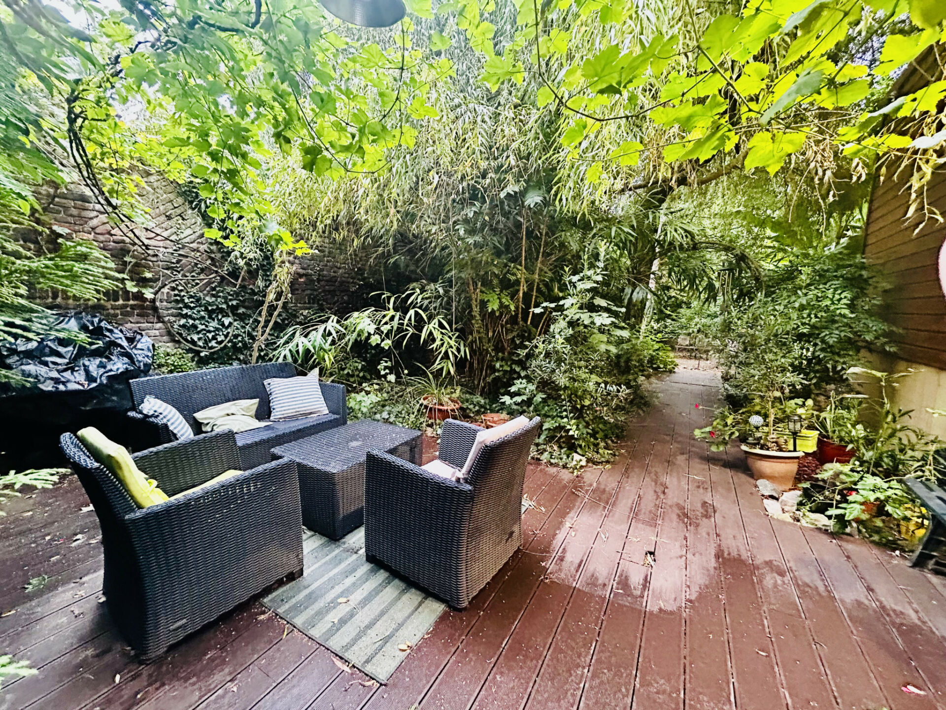 Pour l’extérieur, c’est un espace arboré sans aucun vis à vis de 300m2, aussi rare sur le secteur.